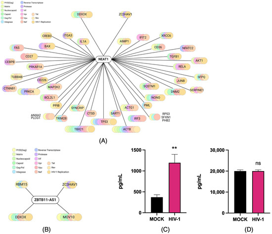 2.4. Prediction of the Putative Cellular Relationship Between lncRNAs NEAT1 and ZBTB11-AS1 and Immune-Related Molecules Induced by HIV-1