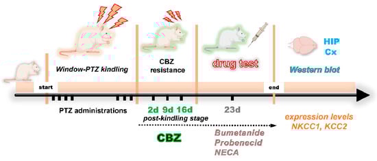 - Li, X.; Zhou, J.; Chen, Z.; Chen, S.; Zhu, F.; Zhou, L. Long-term expressional changes of Na+-K+-Cl− co-transporter 1 (NKCC1) and K+-Cl− co-transporter 2 (KCC2) in CA1 region of hippocampus following lithium-pilocarpine induced status epilepticus (PISE). Brain Res. 2008, 1221, 141–146. [Google Scholar] [CrossRef]