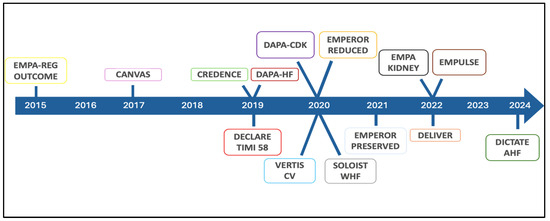 Chronology of SGLT2 inhibitor revolution in cardiology.