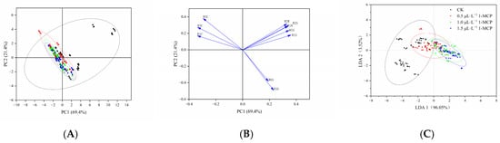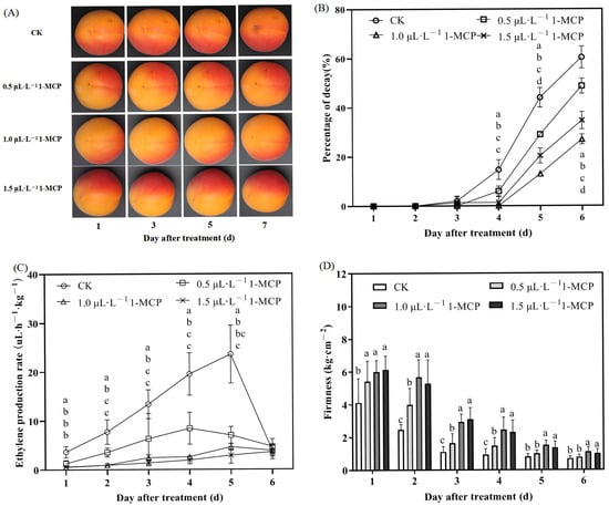 Liu, Z.; Chen, X.; Jing, C.; Wang, D.; He, J.; Hu, J.; Wu, X. Exploring the Effect of 1-MCP Treatment on the Post-Harvest Quality and Electronic Nose Characteristics of ‘Jizaohong’ Apricots. Int. J. Mol. Sci. 2025, 26, 4820. https://doi.org/10.3390/ijms26104820