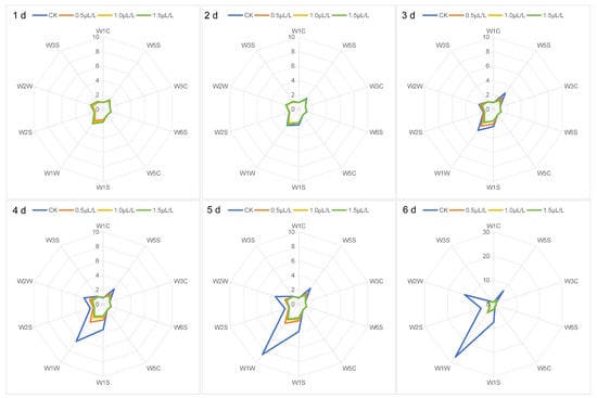 2.3.1. Effect of Different Concentrations of 1-MCP Treatment on the Sensor Response Values of the Electronic Nose
