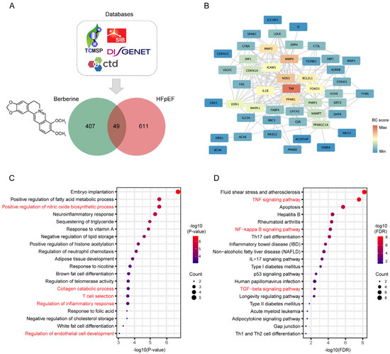 2.2. Network Pharmacology Predicates the Potential Mechanisms of BBR in the Treatment of HFpEF