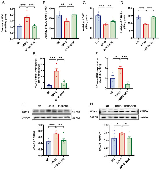 2.4. BBR Suppresses Myocardial Oxidative Stress