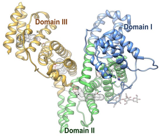 Alpha-fetoprotein (AFP) is structurally a protein consisting of a single polypeptide chain of 609 amino acids with a molecular weight of approximately 69 kDa, and it shares a structural similarity with albumin. This protein is divided into three structural domains: the N-terminal domain (Domain I, amino acids 1–210), the central domain (Domain II, amino acids 211–402), and the C-terminal domain (Domain III, amino acids 403–609). These three domains are connected by disulfide bonds, forming a V-shaped structure, and each domain carries out specific biological functions. In particular, the C-terminal domain contains a leucine zipper-like structure that allows it to bind to signaling proteins and receptors, thereby promoting tumor growth, mediating intracellular transport, and regulating cellular signaling functions [,]. Figure 1 provides a schematic overview of the structure of human AFP.