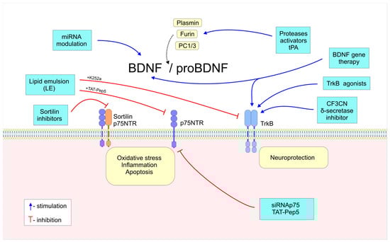 All considered, the interplay between TrkB and p75NTR signaling pathways sets the molecular equilibrium that counterbalances the bifunctional activities of BDNF and proBDNF—neuroprotection or neurodegeneration. Clarifying and targeting the dynamics of these receptors hold significant therapeutic potential for regulating cell survival in various neuropathological conditions.