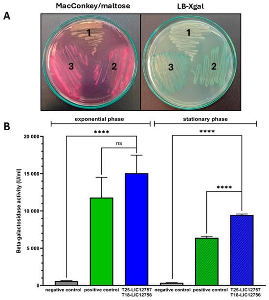 4.4.1. BACTH Assay—Screening and β-Galactosidase Activity Assays