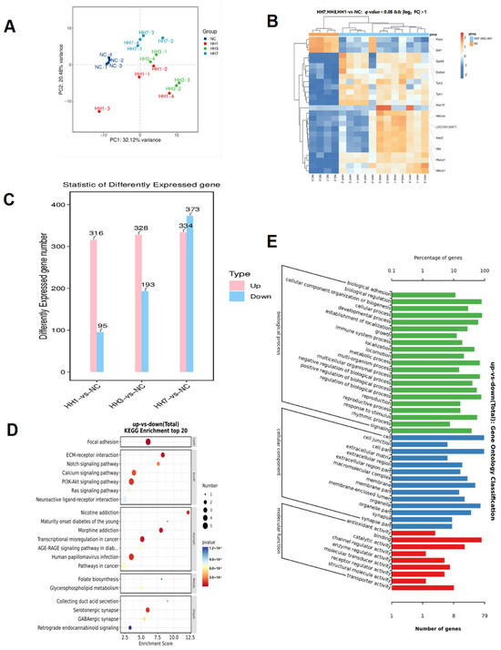 Principal component analysis (PCA) was used to explore transcriptomic differences in the hypothalamus of rats exposed to different durations of hypoxia. The results showed clear separation between groups, with strong intra-group clustering, indicating consistent gene expression changes within groups and reliable inter-group differences (Figure 5A).