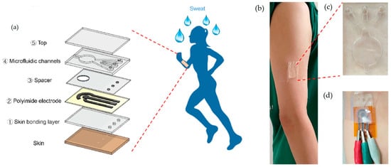 - Gao, F.; Liu, C.; Zhang, L.; Liu, T.; Wang, Z.; Song, Z.; Cai, H.; Fang, Z.; Chen, J.; Wang, J.; et al. Wearable and Flexible Electrochemical Sensors for Sweat Analysis: A Review. Microsyst. Nanoeng. 2023, 9, 1. [Google Scholar] [CrossRef]