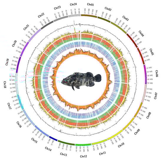 The grouper is an important aquaculture fish species. Hybridization is an effective breeding method for improving the genetics and increasing production efficiency in fish farming practices, and it is also one of the most widely used breeding technologies in fish breeding. Currently, regarding grouper hybridization experiments, numerous research teams have conducted extensive studies and screened many promising grouper hybrid combinations, with the ShanHu grouper considered a hybrid grouper with significant development potential [,]. Whole genome sequencing represents the complete genetic material of an organism and is the most important means of understanding that organism’s information []. Deciphering the genome sequence of the ShanHu grouper can provide comprehensive reference data for studying the genetic mechanisms of grouper hybridization. Additionally, it can accelerate the foundational research on this species, which is substantially meaningful and practically valuable with respect to genetic trait analysis, genetic breeding, germplasm resource conservation, and aquaculture.