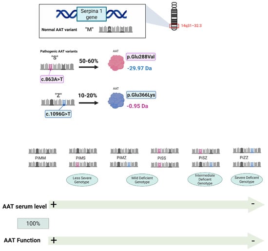 - Foil, K.E. Variants of SERPINA1 and the Increasing Complexity of Testing for Alpha-1 Antitrypsin Deficiency. Ther. Adv. Chronic Dis. 2021, 12. [Google Scholar] [CrossRef]