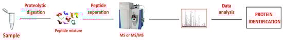 - Cottrell, J.S. Protein Identification Using MS/MS Data. J. Proteom. 2011, 74, 1842–1851. [Google Scholar] [CrossRef]