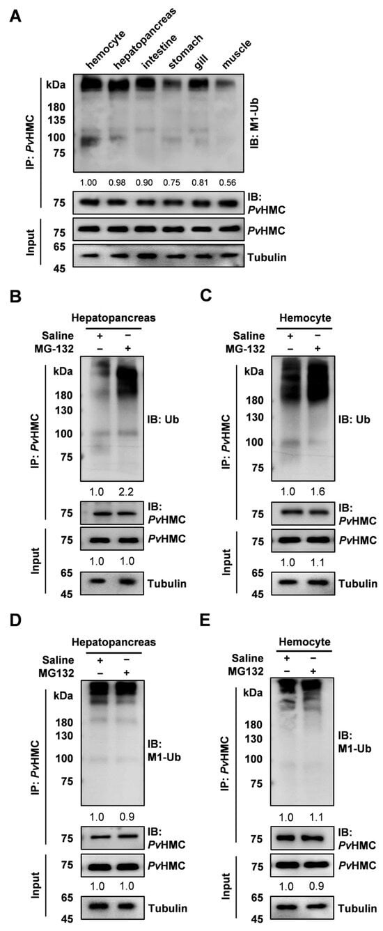 2.1. Identification and Tissue Distribution of Hemocyanin Linear Ubiquitination