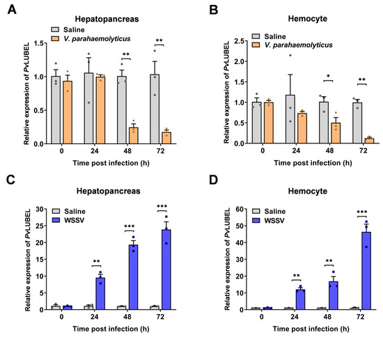 2.6. Impact of PvLUBEL Knockdown on Pathogen Proliferation and Shrimp Survival