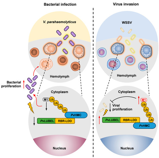 Zhang, X.; Zhang, H.; Zhang, Y.; Lin, Z. Linear Ubiquitination of Hemocyanin Mediated by LUBEL Regulates Innate Immunity in Penaeus vannamei. Int. J. Mol. Sci. 2025, 26, 5110. https://doi.org/10.3390/ijms26115110