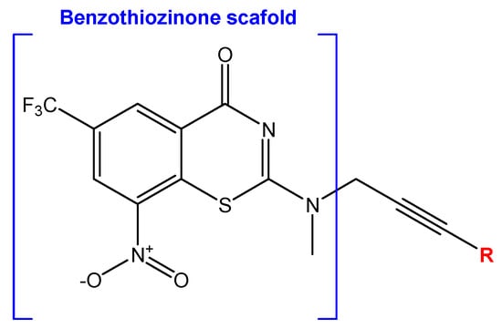 - Wu, X.; Wang, W.; Stelitano, G.; Riabova, O.; Wang, B.; Niu, W.; Cocorullo, M.; Shi, R.; Chiarelli, L.R.; Makarov, V.; et al. Benzothiozinone derivatives with anti-tubercular Activity−Further side chain investigation. Eur. J. Med. Chem. 2024, 264, 115976. [Google Scholar] [CrossRef]