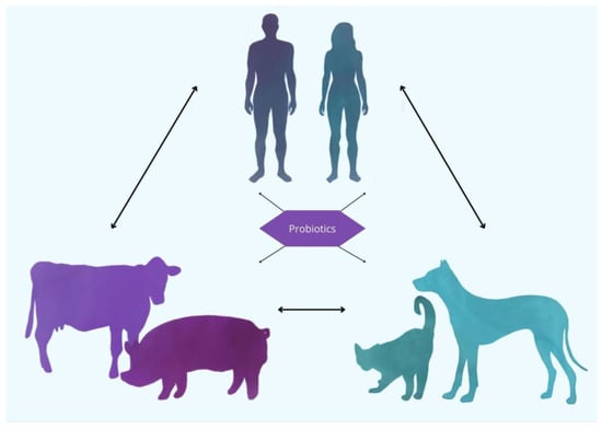 Probiotics serve as a bridge between human, animal, and environmental health. Their responsible use aligns with One Health goals. As global health challenges become more and more connected in these three sectors, as proven, for example, by the SARS-CoV-2 pandemic, probiotics serve as a possibility of managing all of them by using one solution [].