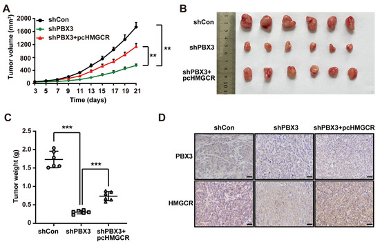 2.5. PBX3/HMGCR Axis Is Crucial for HCC Tumorigenesis