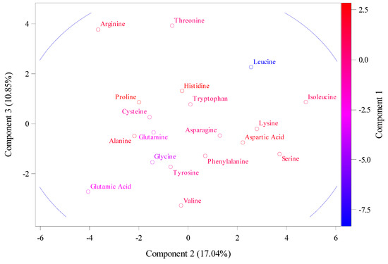 PC1 explains the total variation, highlights the most important amino acids that are associated with the variability of this enzyme. Thus, more attention is paid to these amino acids in the breeding program [19,20]. These results can be applied to wheat research in both nutritional and industrial applications, such as increasing essential amino acids for improve protein quality for human nutrition and enhancing starch from digestible wheat [21].