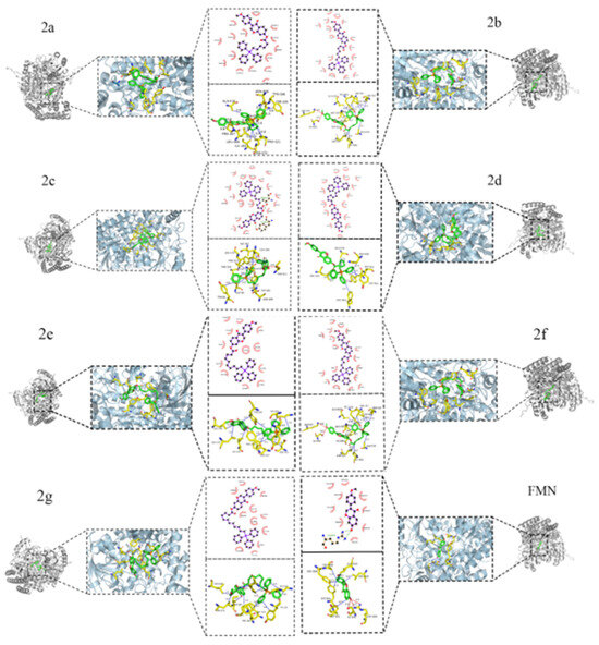 Two-dimensional and three-dimensional interactions of end products 2a~2g and formononetin.