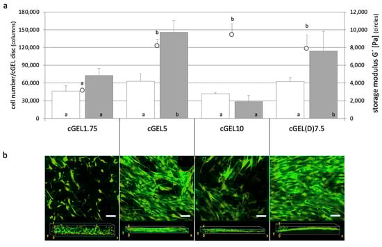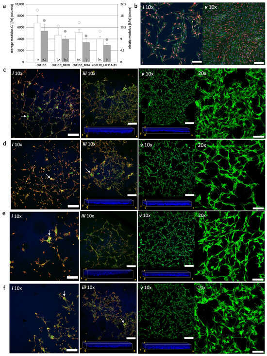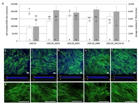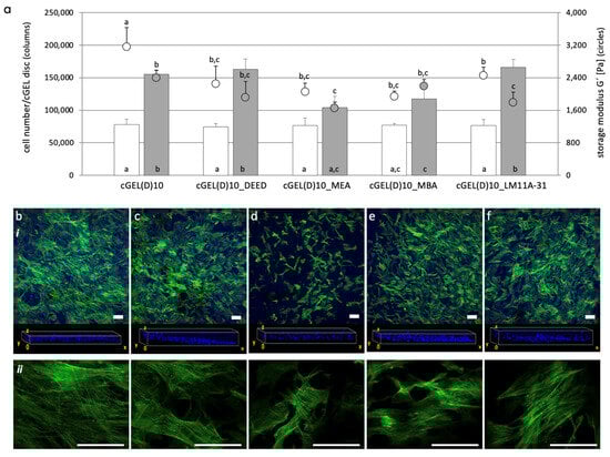 2.2. Cellular Response and Interaction of Fibroblasts and hASCs with cGEL and cGEL(D) Matrices
