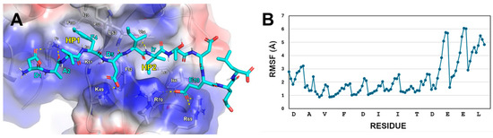 ) of AM7 joins two cysteines bis-alkylated by a para-dibromomethylbenzene (see the Materials and Methods section for details).| Peptide | Sequence | ΔG* (kcal/mol) | SD (kcal/mol) | Avg. Cα RMSF (Å) |