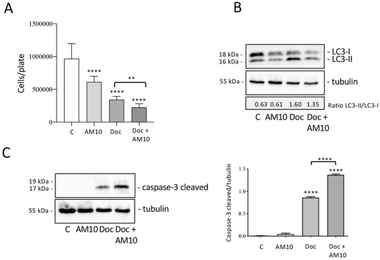- Cristofani, R.; Montagnani Marelli, M.; Cicardi, M.E.; Fontana, F.; Marzagalli, M.; Limonta, P.; Poletti, A.; Moretti, R.M. Dual Role of Autophagy on Docetaxel-Sensitivity in Prostate Cancer Cells. Cell Death Dis. 2018, 9, 889. [Google Scholar] [CrossRef]