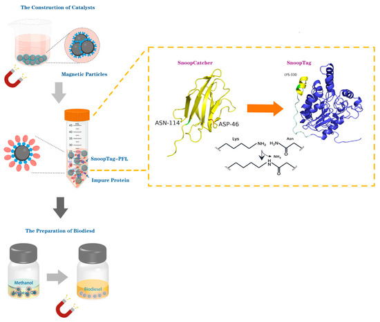 14]. In this study, a supporting magnetic carrier modified by SnoopCatcher protein was prepared by a co-precipitation method. Meanwhile, a lipase from