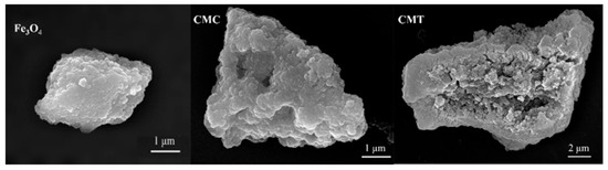The morphology of the synthesized magnetic carriers was characterized through scanning electron microscopy (SEM). The SEM images revealed that the unmodified magnetic particles had a rough and uniform surface. In contrast, after sequential modifications with SNC and PSNT proteins, the surface morphologies of the particles exhibited substantial changes, including increased roughness and the formation of large cavities (