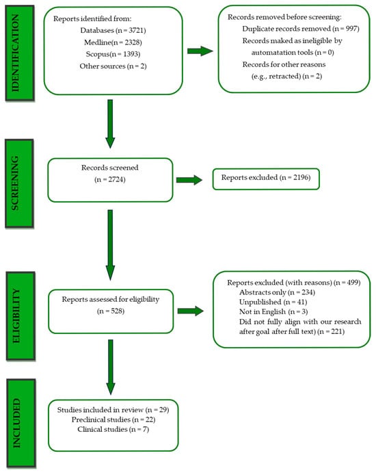 The Preferred Reporting Items for Systematic Reviews and Meta-Analyses (PRISMA) checklist was used to guide this study. The study protocol was registered at the PROSPERO 2025 CRD420251067148. Available from https://www.crd.york.ac.uk/PROSPERO/view/CRD420251067148 (accessed on 26 May 2025).