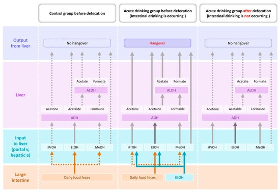 - Ryu, T.; Yang, K.; Chung, B.S. Defecation alleviates hangover by terminating intestinal drinking. Arch. Med. Sci. 2023, 19, 1909. [Google Scholar] [CrossRef] [PubMed]