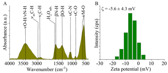 2.1. Characterization of the Amine-Functionalized Magnesium Ferrite Nanoparticles