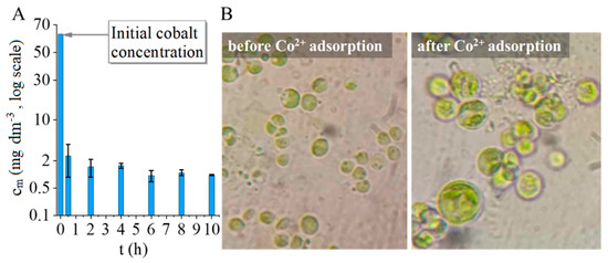 2.2. Results of the Cobalt Adsorption Tests Using Chlorella vulgaris
