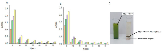 4.4. Magnetic Separation Tests of the Cobalt Adsorbed Algae