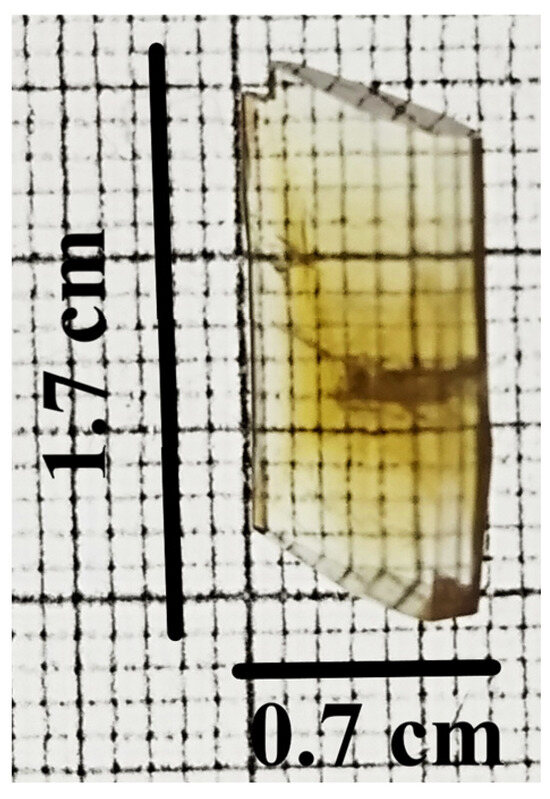 Photograph of grown single crystal of APPABA intermolecular compound, measuring 1.7 cm × 0.7 cm.