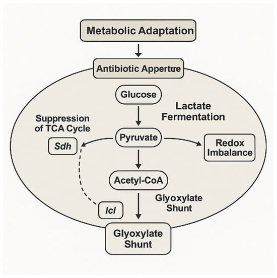 An increasing number of studies have shown that metabolic adaptation can affect antibiotic susceptibility even in the absence of canonical genetic changes, through the modulation of pathways such as glycolysis, the tricarboxylic acid (TCA) cycle, the glyoxylate shunt, lipid metabolism, and oxidative stress responses [,].
