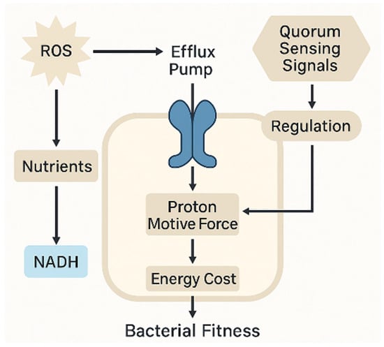 It is also important to emphasize that metabolic rewiring is not merely a passive response: in many bacterial species, environmental signals (nutrients, stress molecules, low-dose antibiotics) can activate bona fide regulatory circuits that actively promote the transition to alternative metabolic states, via redox transducers, quorum sensing systems, and global regulators such as Crp, SoxR, and ArcA [,].