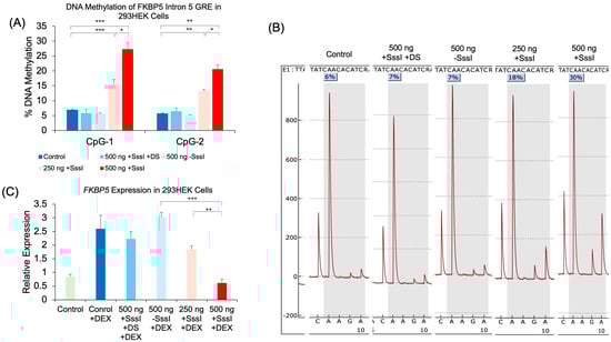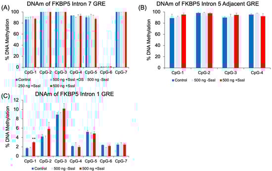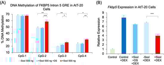 - Cox, O.H.; Song, H.Y.; Garrison-Desany, H.M.; Gadiwalla, N.; Carey, J.L.; Menzies, J.; Lee, R.S. Characterization of glucocorticoid-induced loss of DNA methylation of the stress-response gene Fkbp5 in neuronal cells. Epigenetics 2021, 16, 1377–1397. [Google Scholar] [CrossRef]
