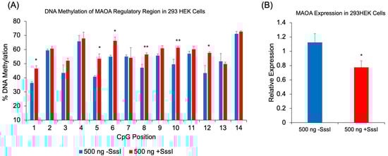 - Renbaum, P.; Abrahamove, D.; Fainsod, A.; Wilson, G.G.; Rottem, S.; Razin, A. Cloning, characterization, and expression in Escherichia coli of the gene coding for the CpG DNA methylase from Spiroplasma sp. strain MQ1(M.SssI). Nucleic Acids. Res. 1990, 18, 1145–1152. [Google Scholar] [CrossRef] [PubMed] [PubMed Central]