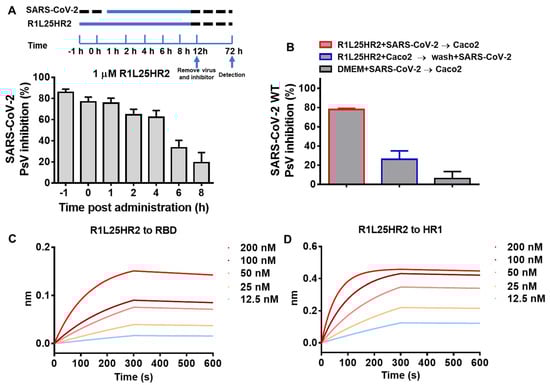 2.3. R1L25HR2 Inhibited SARS-CoV-2 Entry at the Early Stage and Exhibited a High Affinity to RBD and HR1