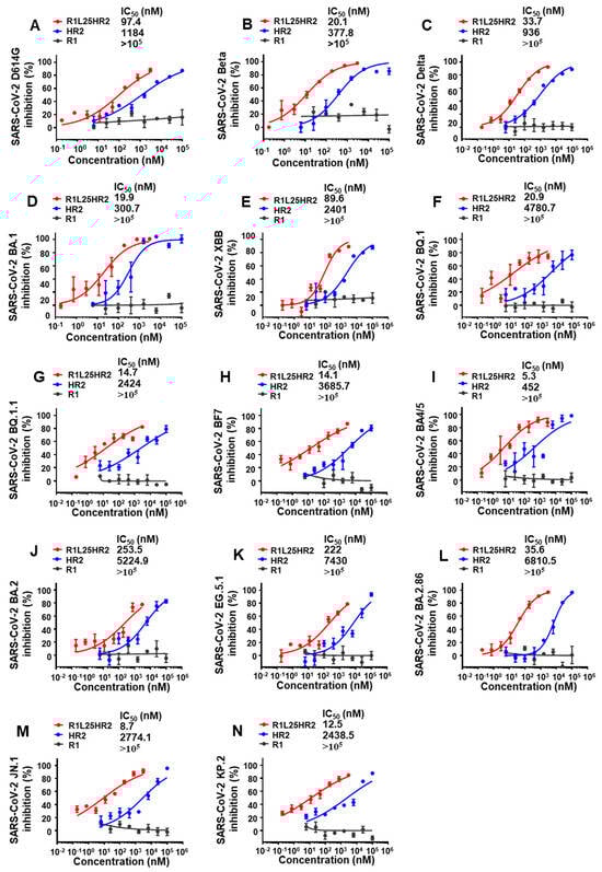2.5. R1L25HR2 Exhibited Broad and Potent Inhibitory Activity Against Different SARS-CoV-2 Variants