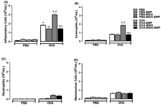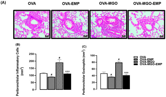 Chicago/Turabian StyleMedeiros, Matheus L., Akila L. Oliveira, and Edson Antunes. 2025. "The SGLT2 Inhibitor Empagliflozin Mitigates the Harmful Effects of Methylglyoxal Exposure on Ovalbumin-Induced Mouse Airway Inflammation" International Journal of Molecular Sciences 26, no. 12: 5753. https://doi.org/10.3390/ijms26125753