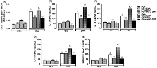 2.4. Analysis of IgE, IL-4, IL-5, IL-13 and Eotaxin Levels