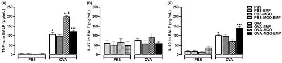 4.6. Quantification of Cytokines, Eotaxin, IgE, and MGO Levels in Serum and BALF