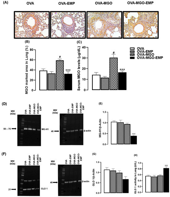 - Medeiros, M.L.; Oliveira, M.G.; Tavares, E.G.; Mello, G.C.; Anhê, G.F.; Mónica, F.Z.; Antunes, E. Long-term methylglyoxal intake aggravates murine Th2-mediated airway eosinophil infiltration. Int. Immunopharmacol. 2020, 81, 106254. [Google Scholar] [CrossRef]