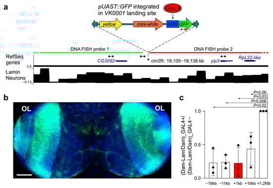 2.3. In Neurons, GAL4 Binding Within a LAD Results in Local Weakening of Interactions with the NL Around the Binding Site