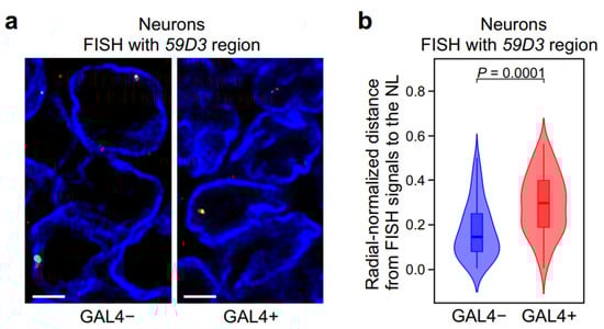 2.4. In Neurons, GAL4 Binding to a Silent Locus Leads to the Locus Repositioning from the NL to the Nuclear Interior