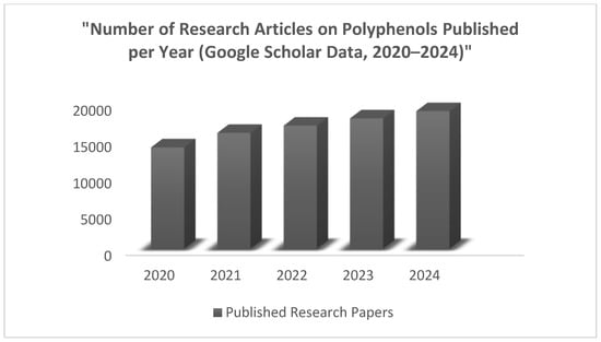 Number of Research Articles on Polyphenols Published per Year (Google Scholar Data, 2020–2024).
