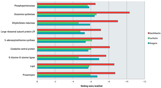 | Streptococcus agalactiae | Lipoprotein signaling peptidase | −8.6 * | −5.8 | −5.7 |
