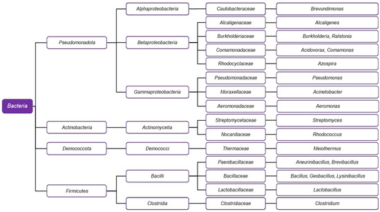 Various classes within the Bacteria domain are recognized for their ability to degrade PCL, primarily represented by the phyla Pseudomonadota, Actinobacteria, Deinococcota, and Firmicutes.