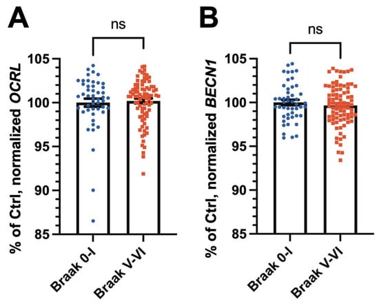 2.2.1. RNA Expression Levels of OCRL and the Autophagy Marker BECN1 Are Not Significantly Altered in AD Brains